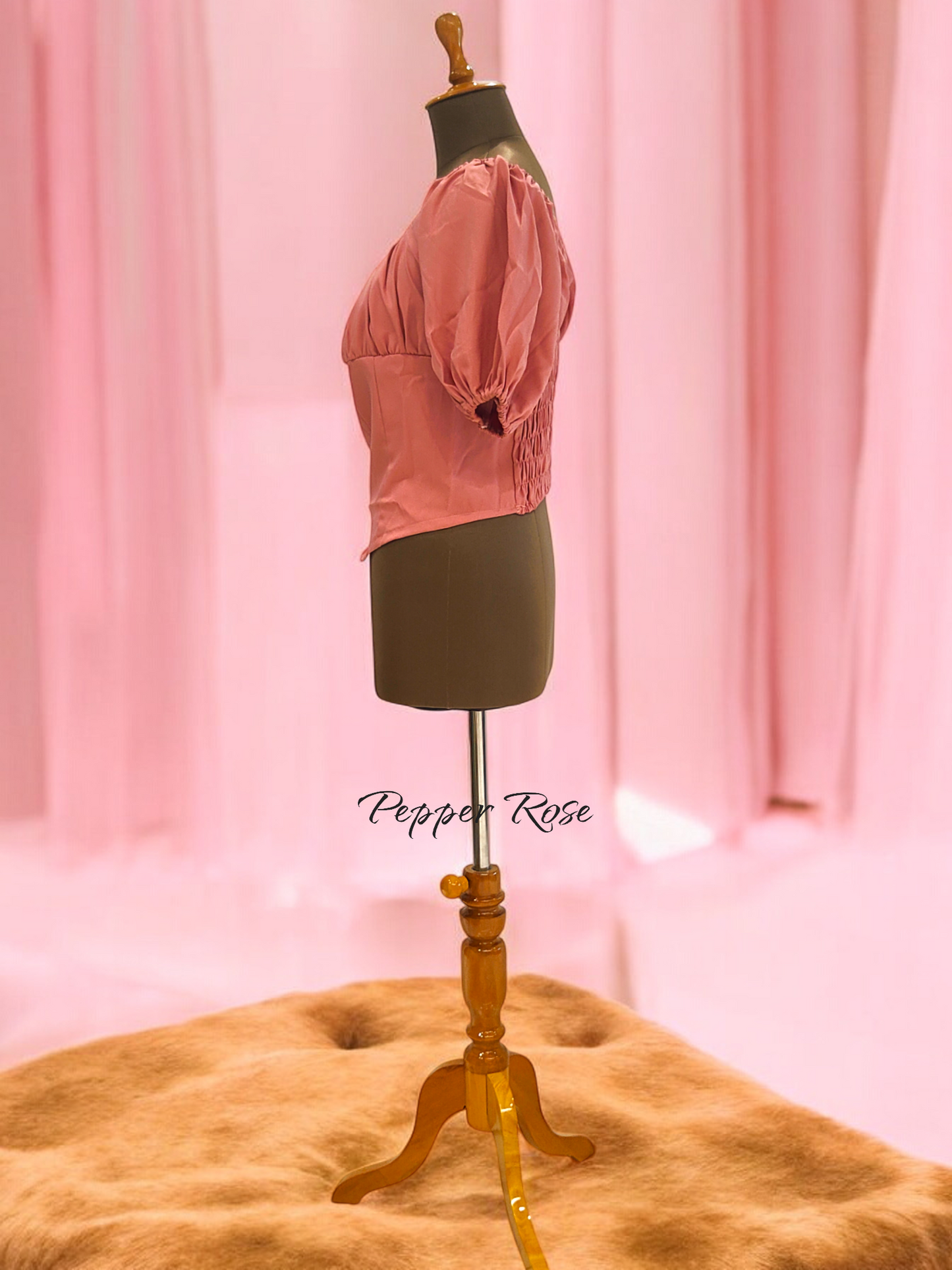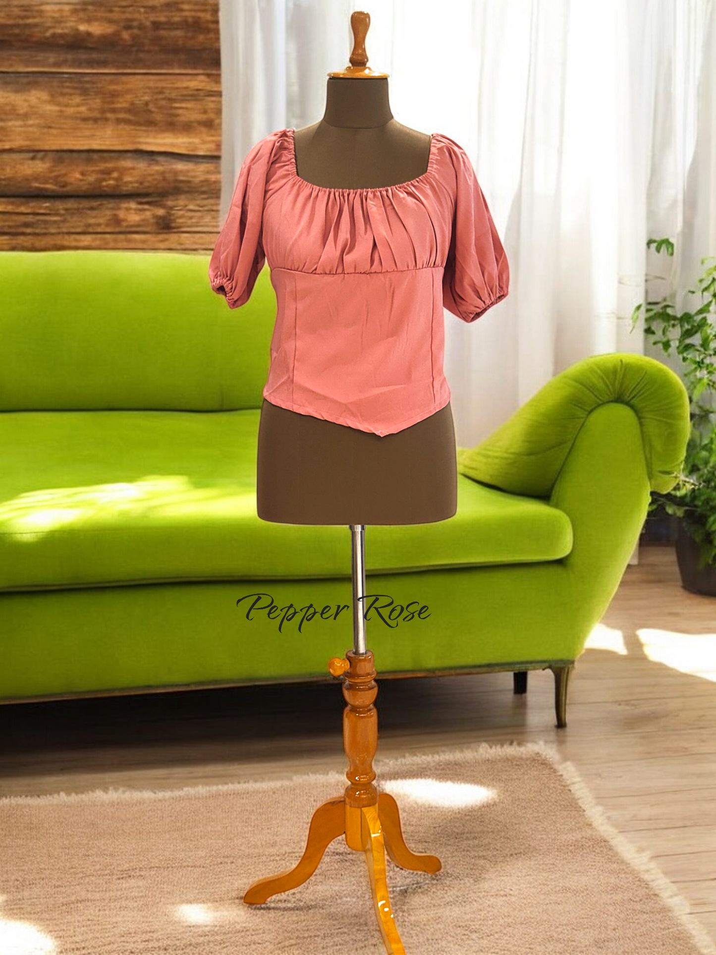 Peach Ava hem top with puff sleeves in grain texture(combination of chiffon & satin fabric). Bold beautiful and ready to shine - Our tops are made for moments that matter.