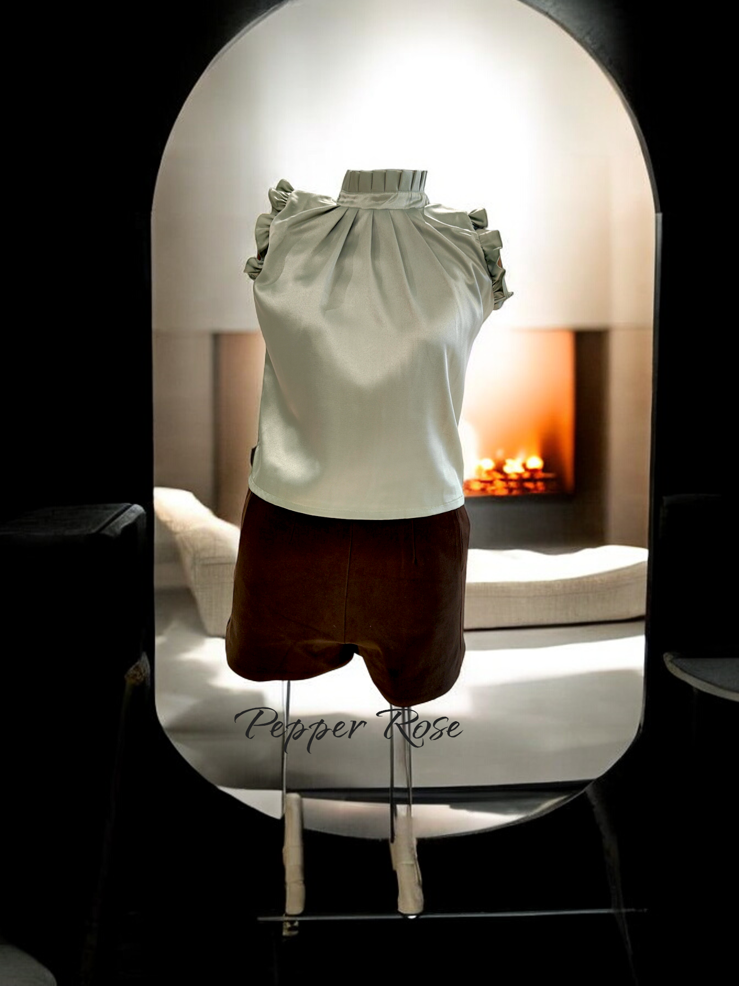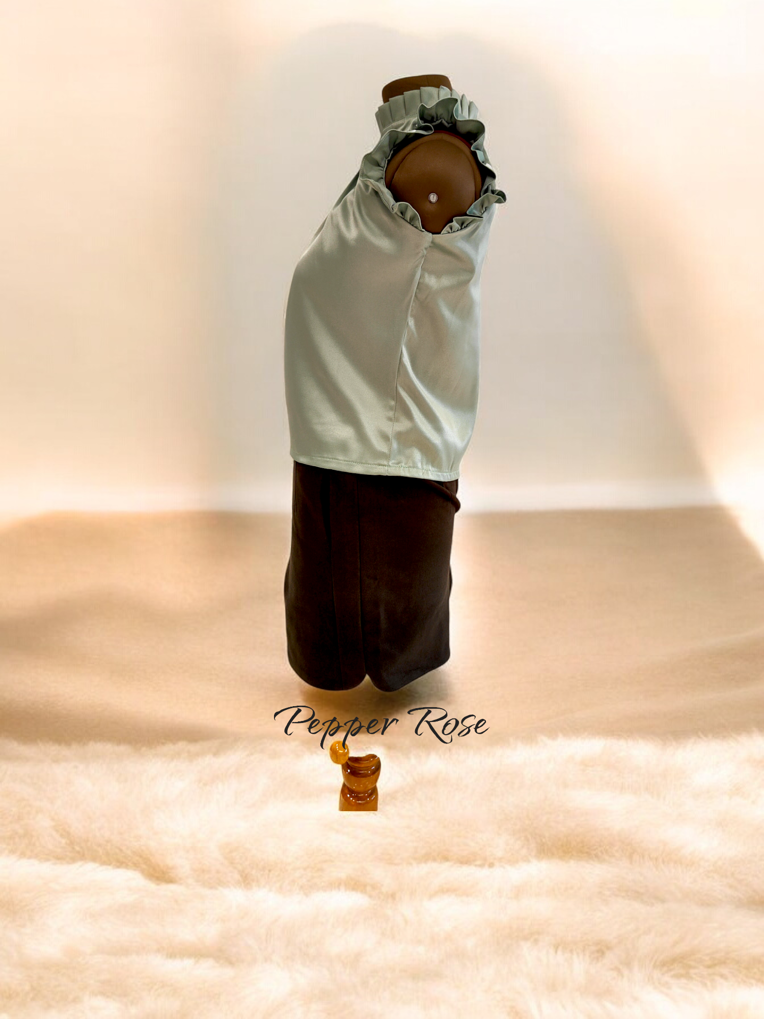 Olive Green Calina sleeveless top in Grain Texture (combination of chiffon & satin fabric). Bold beautiful and ready to shine - Our sleeveless tops are made for moments that matter.