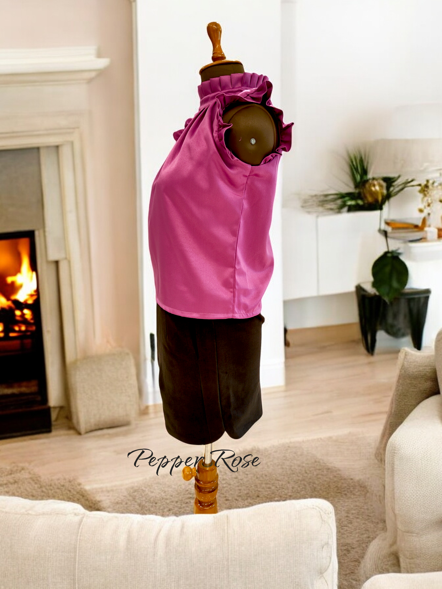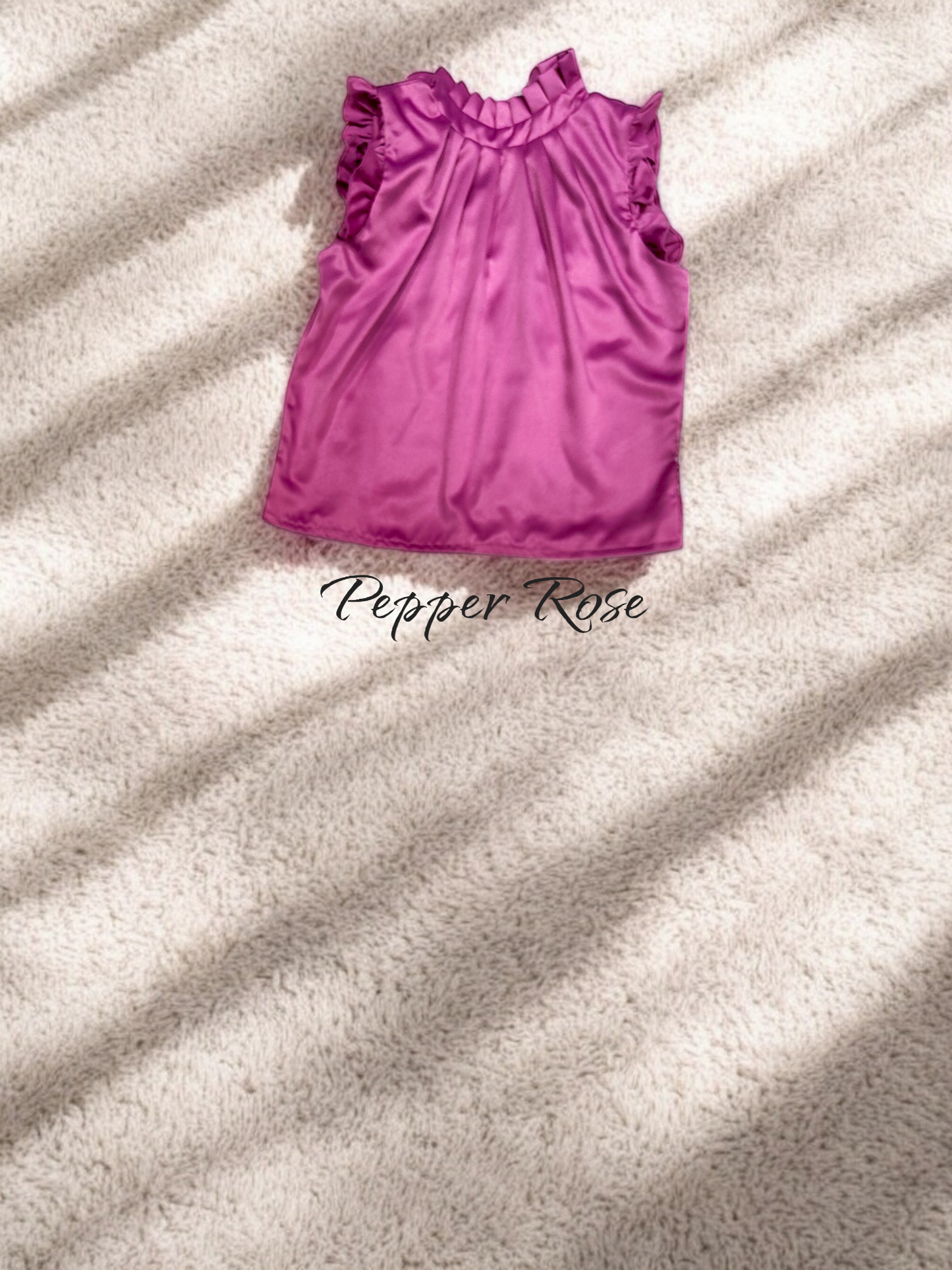 Pink Calina sleeveless top in Grain Texture (combination of chiffon & satin fabric). Bold beautiful and ready to shine - Our sleeveless tops are made for moments that matter.