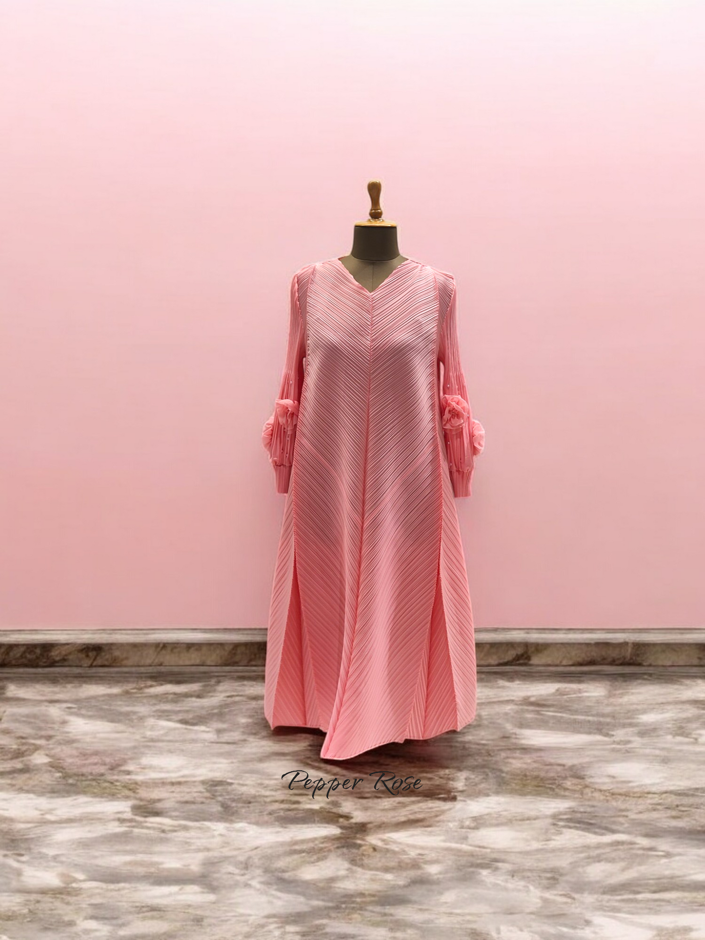 Miyake Mystic Asymmetrical Pleated Dress - Pink