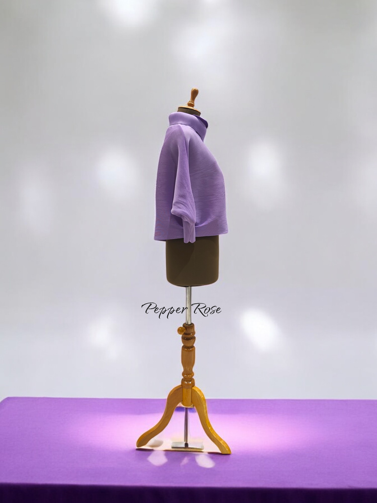 This pleated women's top with Turtleneck by Miyake offers a modern and stylish look. Made of polyester fabric, this dress provides coolness and comfort in summer with its light and breathable structure.