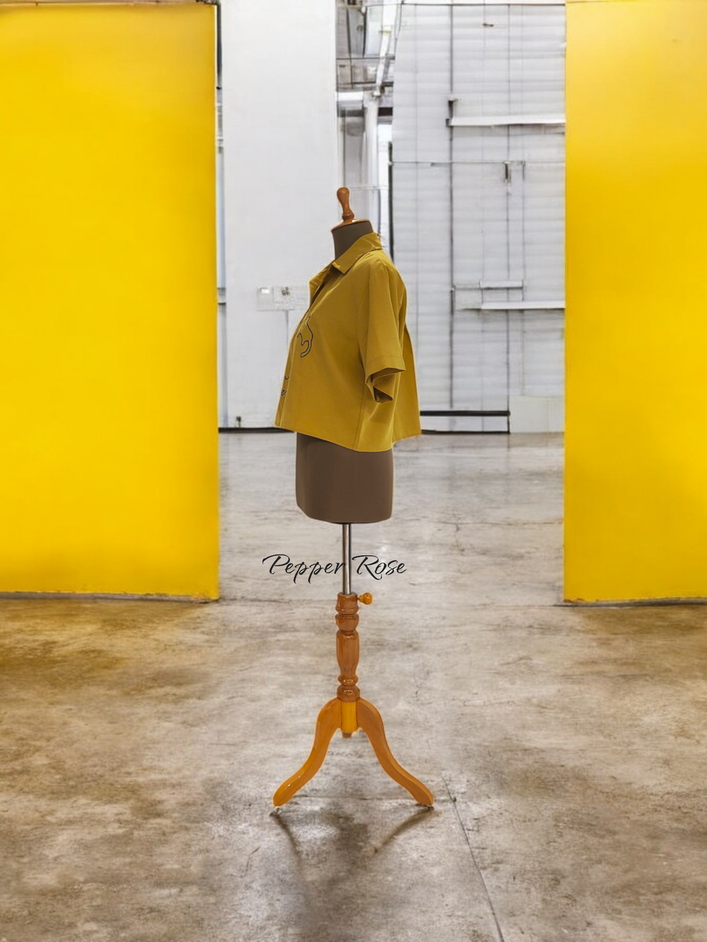 Mustard yellow Ramaira shirt with cat print in chiffon fabric. Designed for the bold and stylish, these shirts transition effortlessly from casual outings to statement looks.