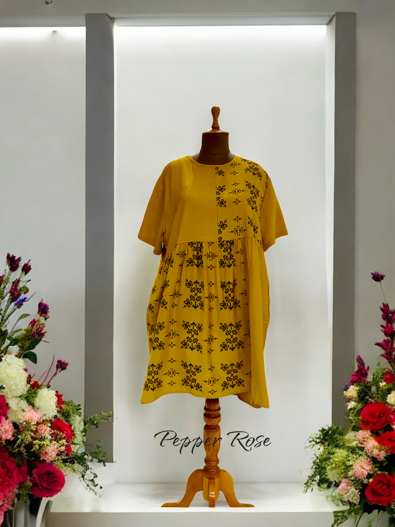 Rivaya Ethnic Motifs Printed top cum dress - Yellow