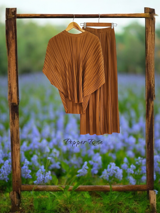 Alice Pleated Plain Co-Ord Set - Beige