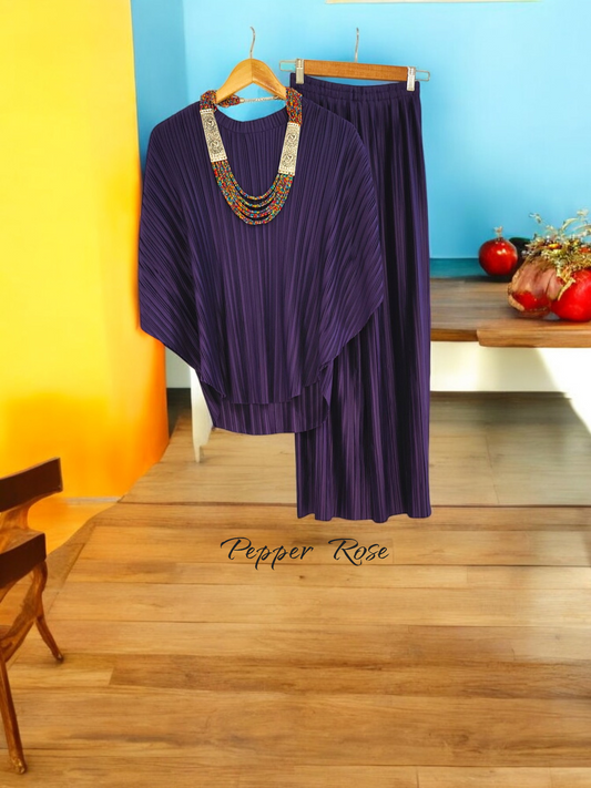 Alice Pleated Plain Co-Ord Set - Purple