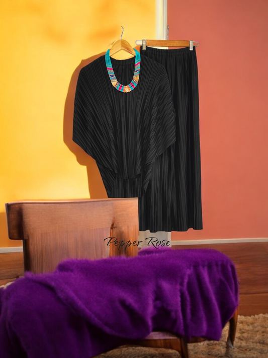 Alice Pleated Plain Co-Ord Set - Black